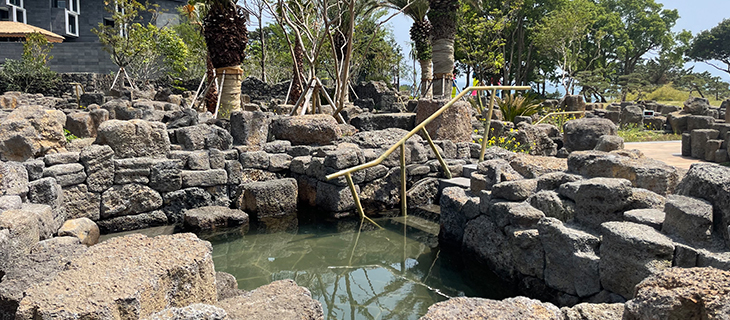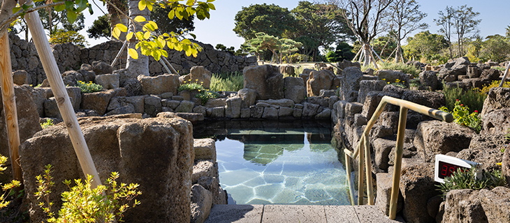 현무암으로 만들어진 컨셉이 다른 8개의 야외 노천탕에서