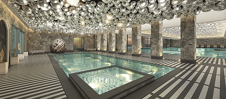 차별화된 인도어 풀과 현무암으로 만들어진 컨셉이 다른 8개의 야외 노천탕에서