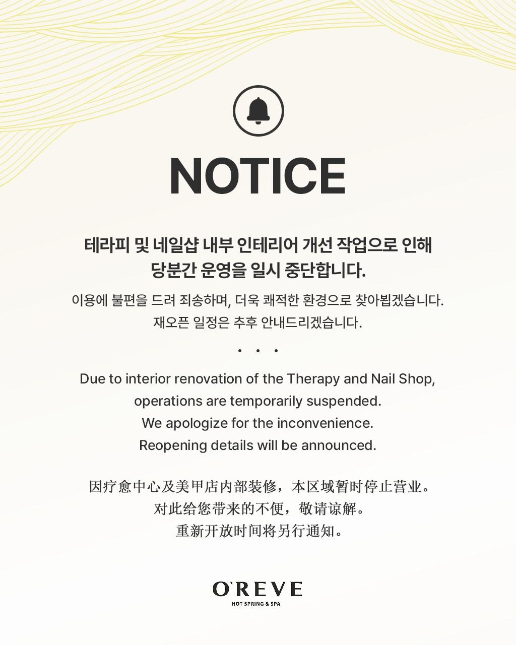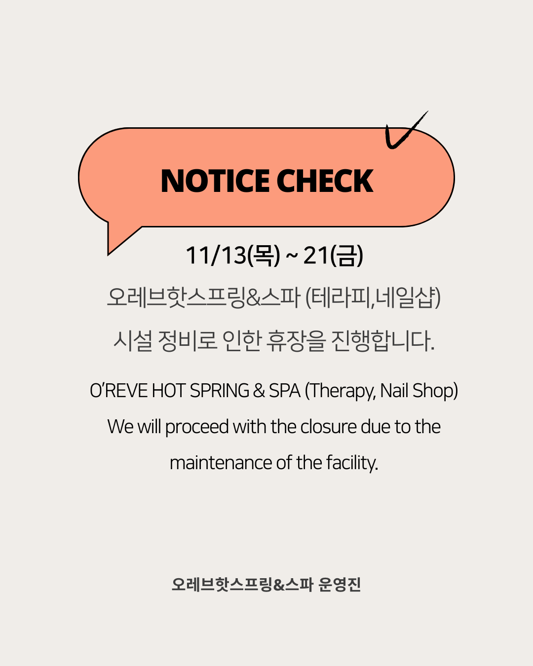 작년 9월 출시하여 그동안 판매를 진행하였던 정기권의 판매를 중단하게 되었습니다.잔여 정기권 소진 및 그동안 오레브 핫스프링앤스파를 이용해 보시지 못했던 분들에게